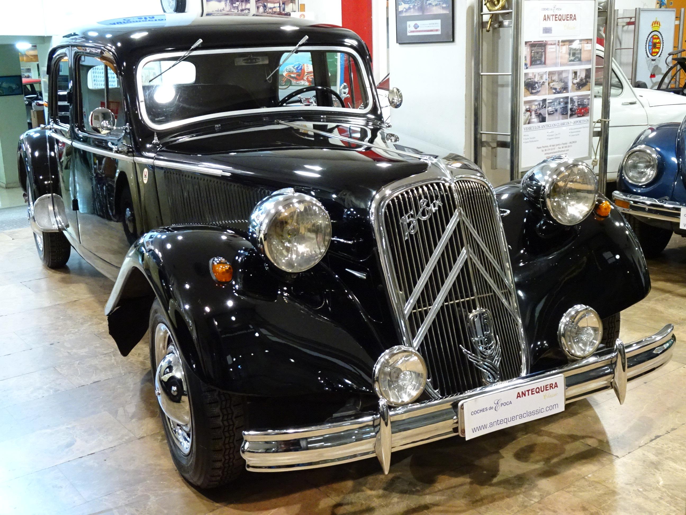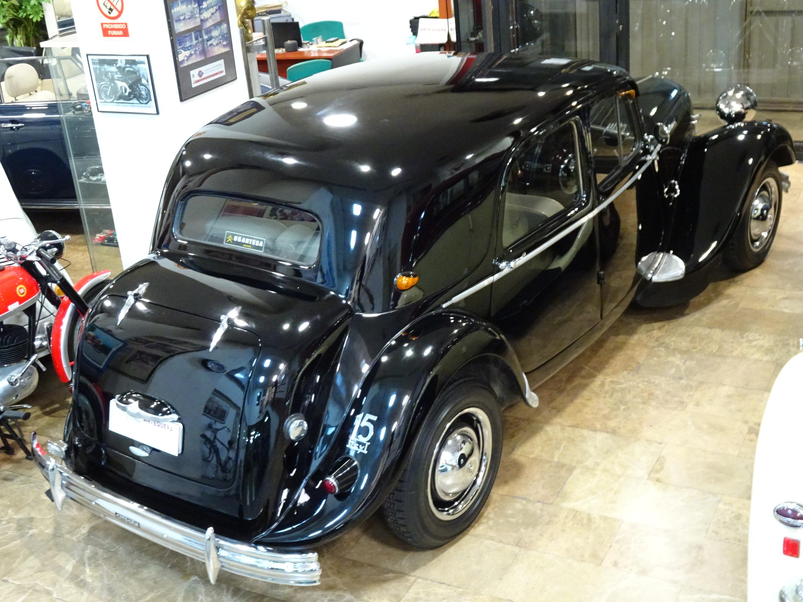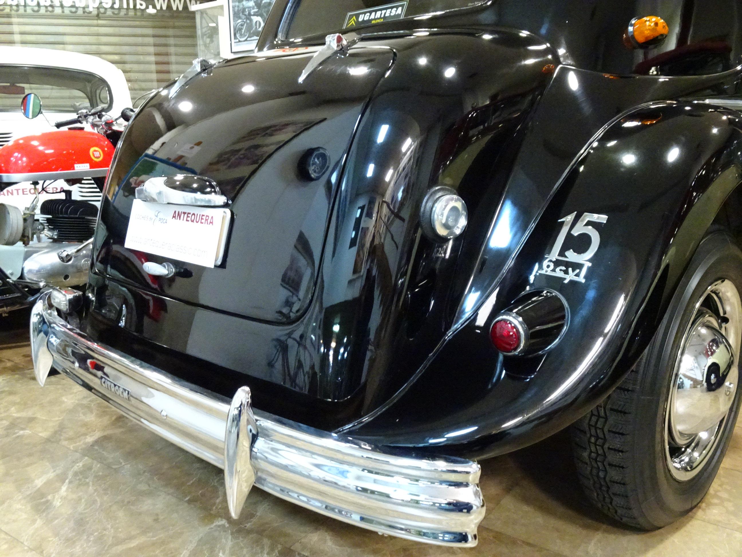 2867 CC., 77 CV, 6 CILINDROS, 3 VELOCIDADES, CARBURADOR SOLEX 30 PAAI, CITROËN 15/6 TRACTION AVANT, CITROËN 15 SIX D 6 CYL., EXCLUSIVA VERSIÓN ORIGINAL CON MALETERO RAOUL (MALLE RAOUL), DISEÑADO POR RAOUL CARROSSIER (PARIS - FRANCIA), FABRICADO POR S.A. ANDRÉ CITROËN (PARIS), BASTIDOR 699379, TIPO DE MOTOR MO-101, NÚMERO DE MOTOR PM-05197, CARROCERÍA EH-07369, ESTILO SEDÁN, COLOR NEGRO, TAPICERÍA ORIGINAL GRIS EN PERFECTO ESTADO, FAROS MARCHAL CON LUZ AMARILLA + FAROS LARGO ALCANCE MARCHAL 662 762, 4 AMPLIAS PLAZAS, PARABRISAS CON APERTURA PARA VENTILACIÓN, VENTANILLAS DELANTERAS CON APERTURA DERIVABRISAS, RUEDAS NUEVAS MICHELIN 165-400, CROMADOS NUEVOS, RECIENTE REVISIÓN Y PUESTA A PUNTO REALIZADA TRAS LARGO PERÍODO INACTIVO (REFRIGERACIÓN, SISTEMA COMPLETO DE FRENOS, CARBURACIÓN, BOMBA DE AGUA, BOMBA DE GASOLINA, ETC.), ELEMENTOS DE EMBELLECIMIENTO ROBRI / AXO, MUY BUEN ESTADO, CORRECTO FUNCIONAMIENTO, PERTENECIENTE AL CONCESIONARIO CITROËN EN VALENCIA - UGARTE (UGARTESA), VEHÍCULO EN ESCAPARATE DE CITROËN DURANTE MÁS DE 40 AÑOS Y MISMO PROPIETARIO MÁS DE 60 AÑOS, SIEMPRE EN VALENCIA, MODELO MUY EXCLUSIVO DE CITROËN TRACCION, LIBRO DE INSTRUCCIONES ORIGINAL, VARIOS LIBROS DE REPARACIÓN - MANTENIMIENTO E INFORMACIÓN DEL MODELO (EN FRANCÉS), MINIATURA NUEVA A ESCALA 1:43 DE LA SAGA DES TRACTION CON FASCÍCULO, JUEGO DE HERRAMIENTAS ORIGINALES, MATRÍCULA ORIGINAL (V), DOCUMENTACIÓN AL DÍA, POSIBILIDAD VEHÍCULO HISTÓRICO CON EXENCIÓN DE ITV. SE INCLUYEN NUMEROSOS RECAMBIOS NUEVOS (AMORTIGUADORES, MANDOS, LLAVES CITROËN, PILOTOS INTERMITENTES, EMBLEMAS, KIT CARBURADOR,ETC.)