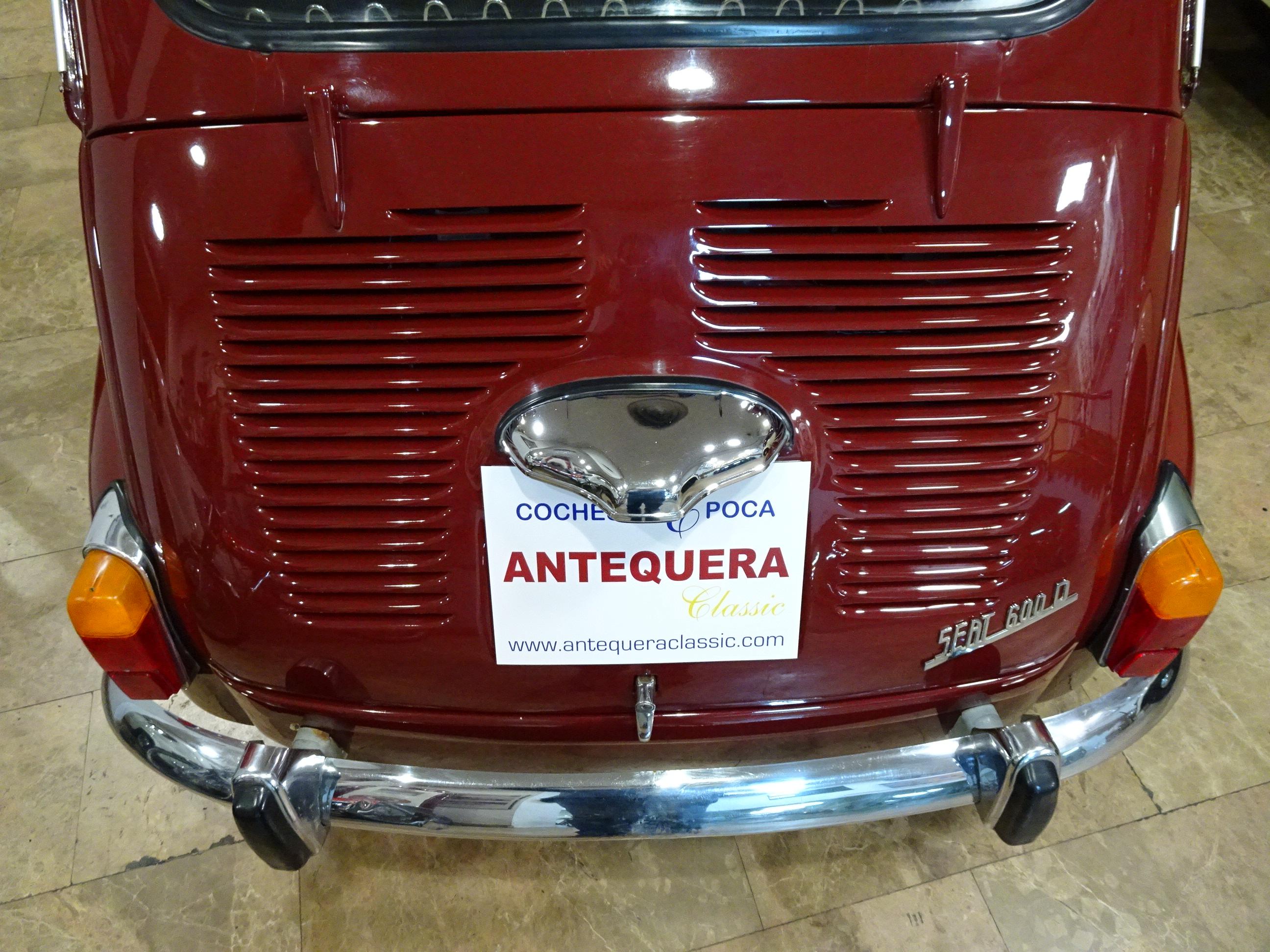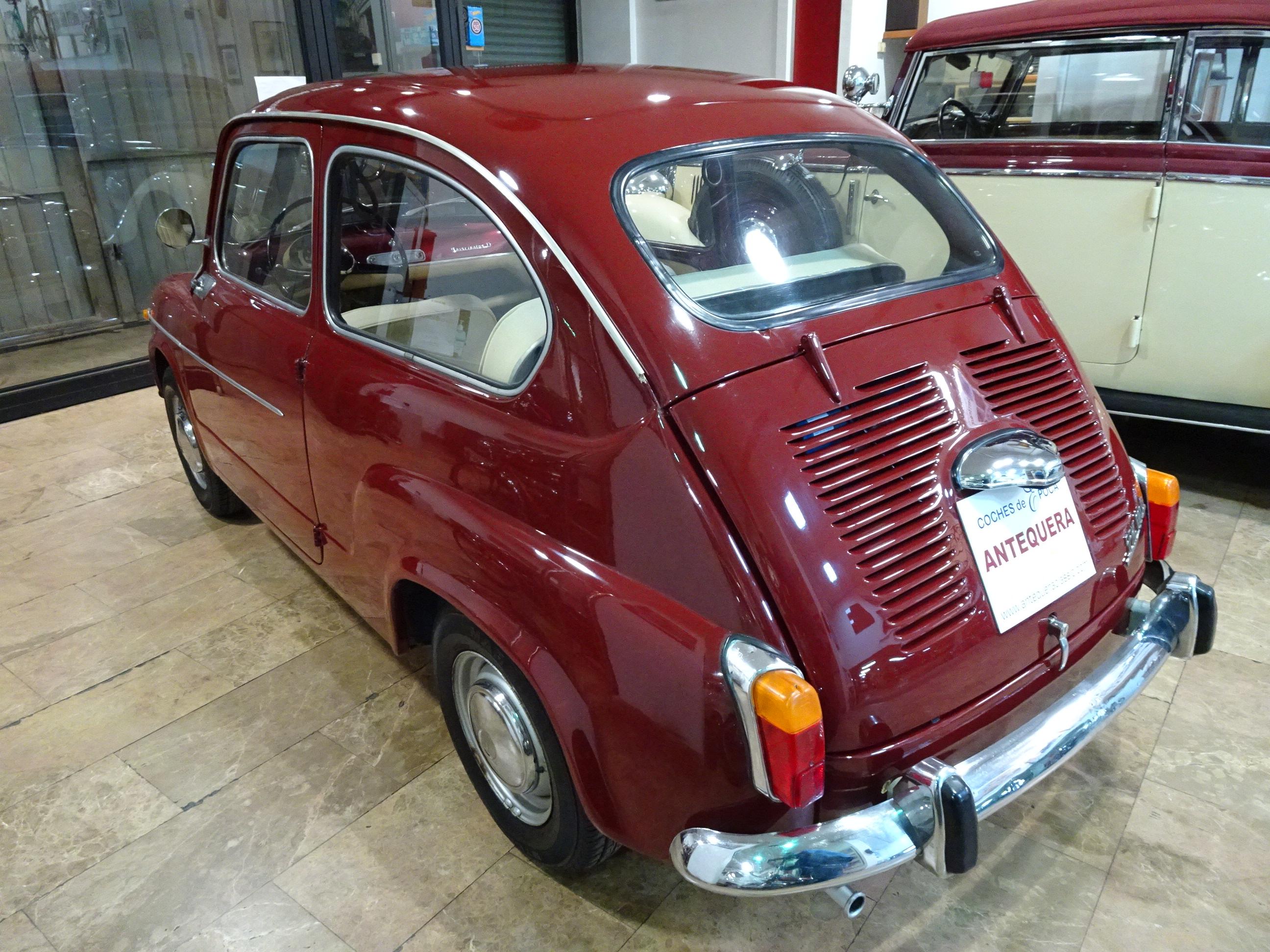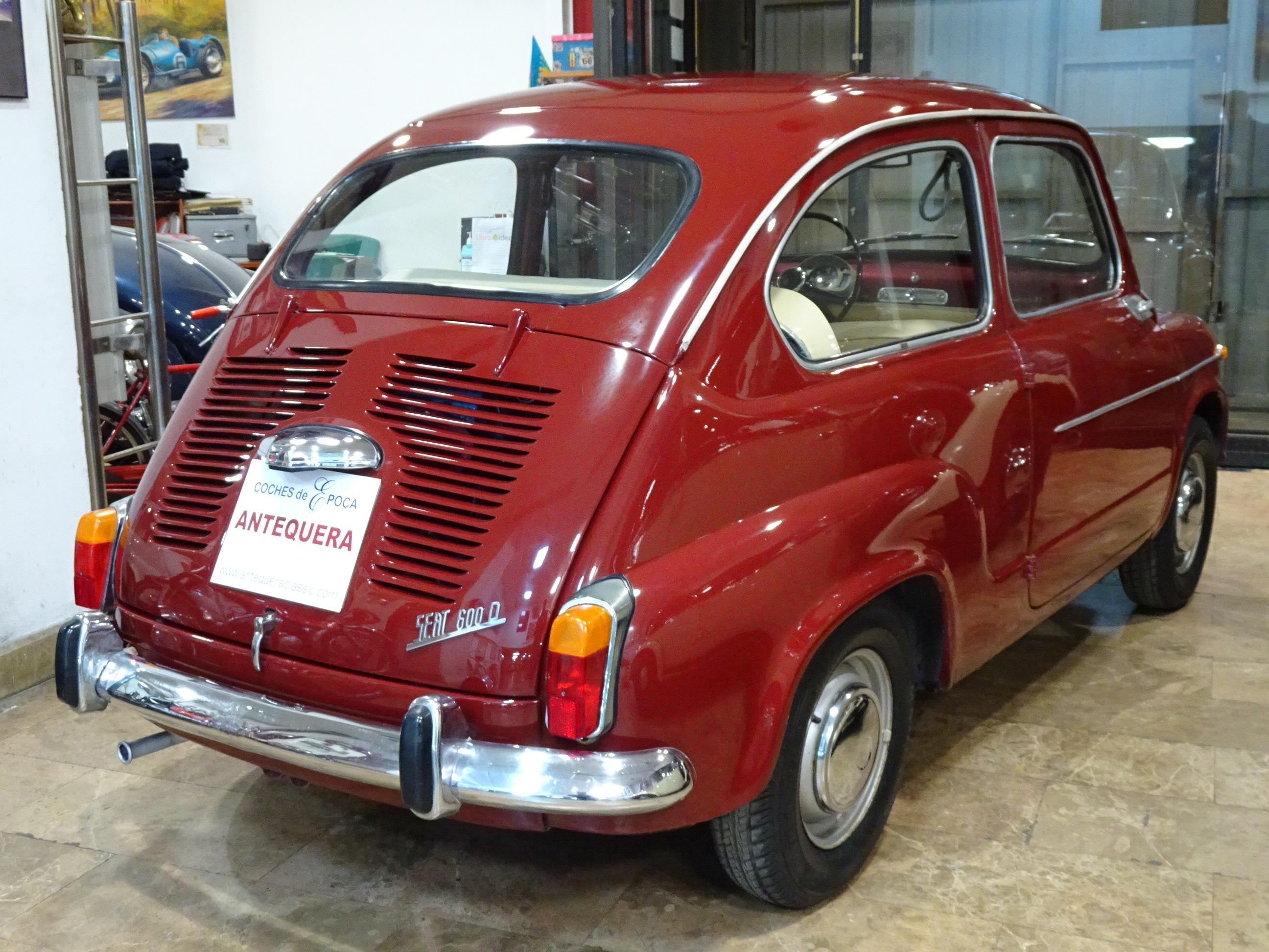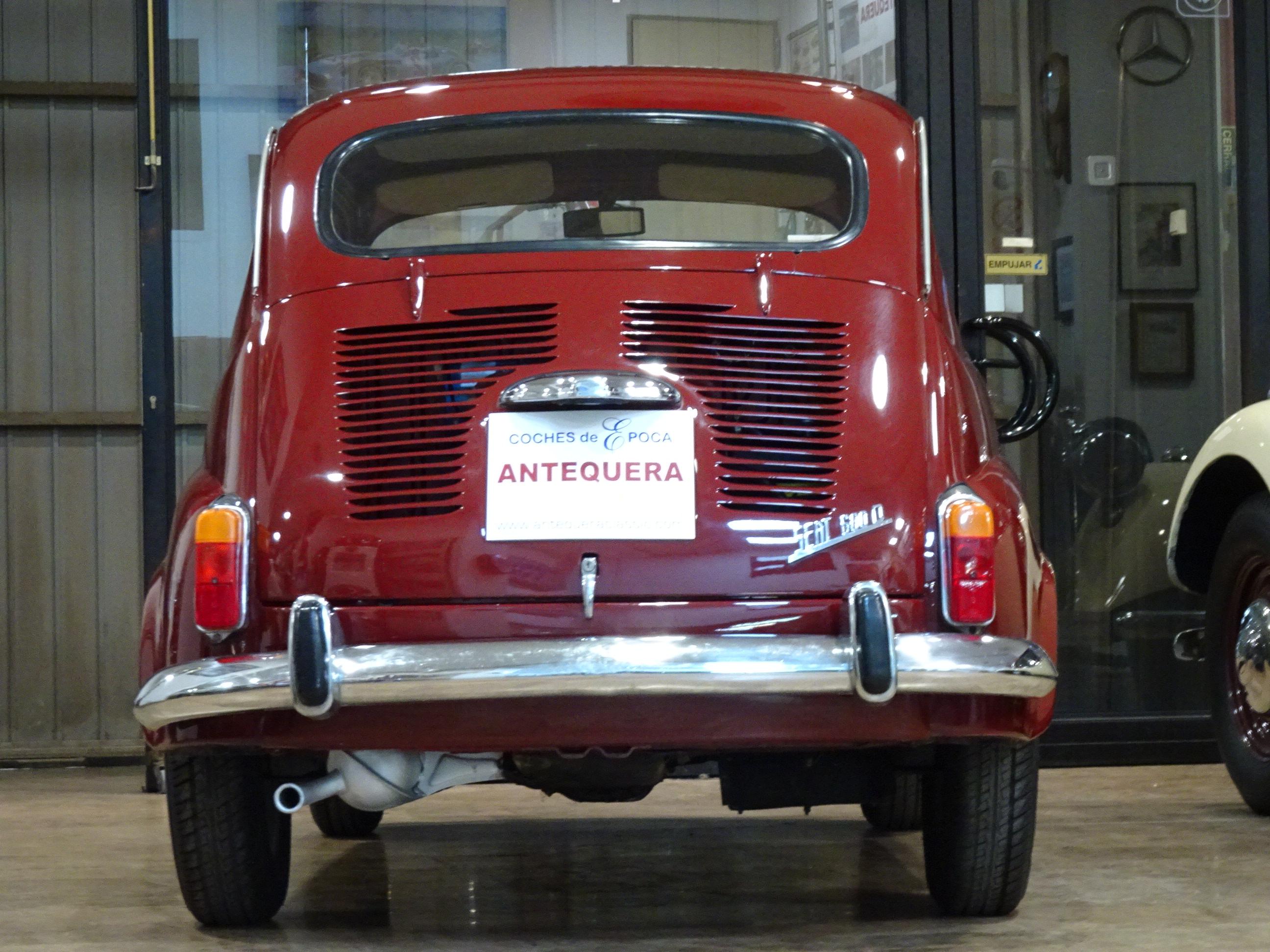 767 CC., 29 CV, 4 CILINDROS, 4 VELOCIDADES, VERSIÓN SEISCIENTOS D SEGUNDA SERIE, COLOR GRANATE - BURDEOS, BANDEJA CENTRAL Y TRASERA CROMADAS, CAJA HERRAMIENTAS ORIGINAL SEAT, RADIADOR MAYOR CAPACIDAD (DE MONTAÑA), 4 PLAZAS, ALUMBRADO VERSIÓN 600 E, LIBROS DE INSTRUCCIONES ORIGINALES, TAPICERÍA BEIGE, RECIÉN TAPIZADO (ASIENTOS Y PANELES LATERALES), PUESTA A PUNTO RECIENTE (BOMBA DE AGUA, FRENOS, CARBURACIÓN, ETC.), MISMO PROPIETARIO DESDE HACE MÁS DE 25 AÑOS, MUY ORIGINAL, MUY BUEN ESTADO, CORRECTO FUNCIONAMIENTO, MATRÍCULA ORIGINAL (V), DOCUMENTACIÓN e ITV AL DÍA.