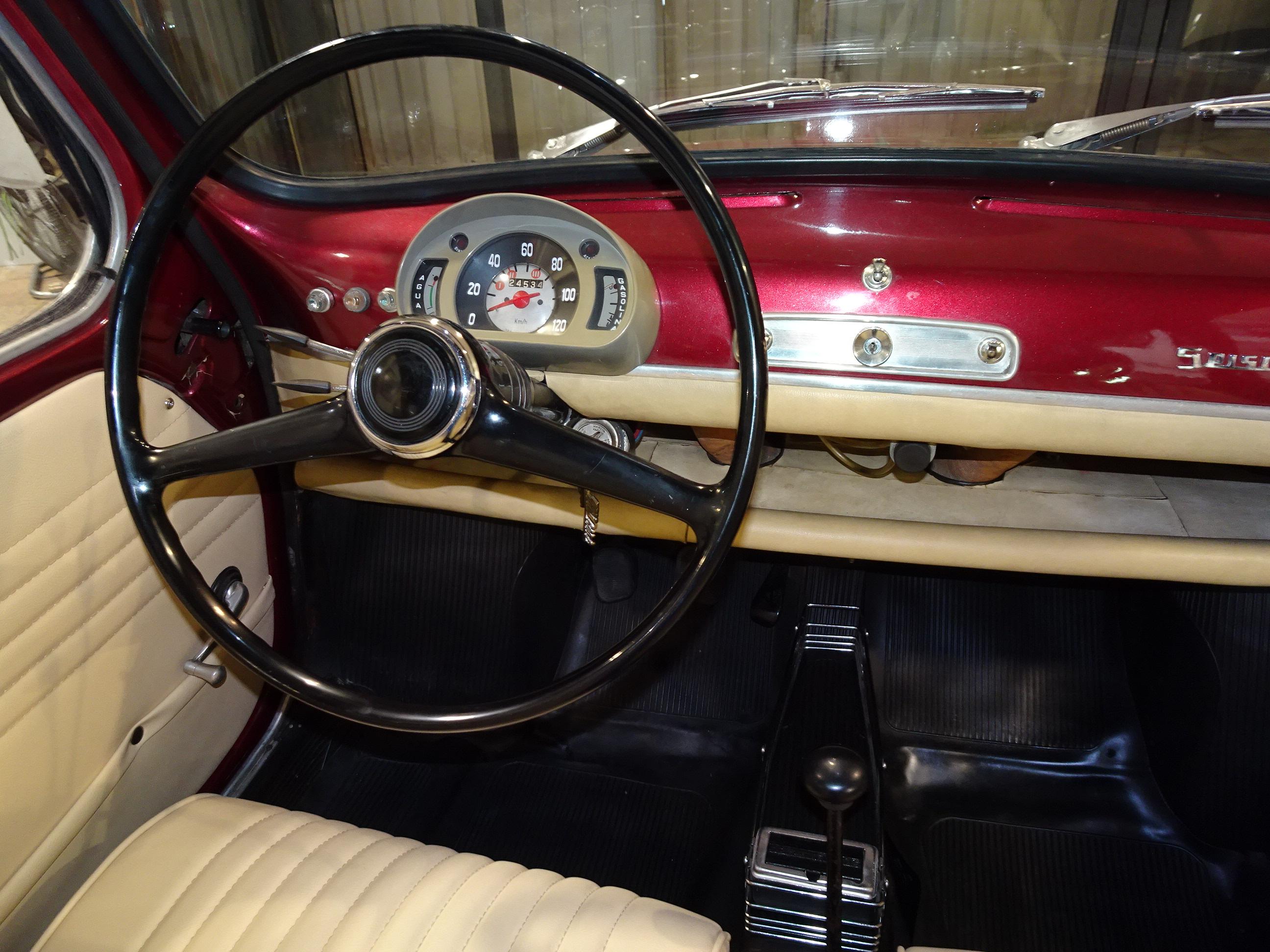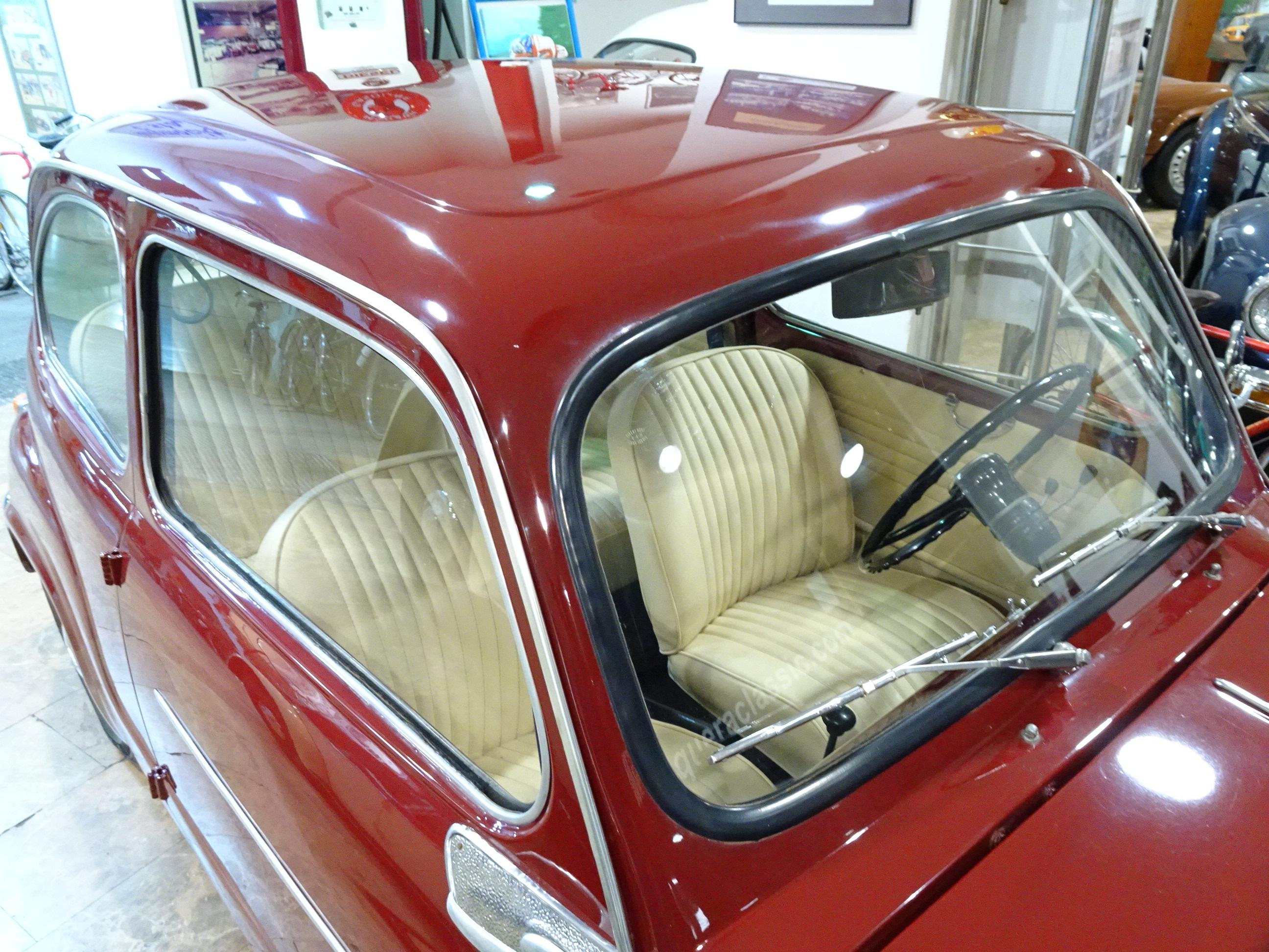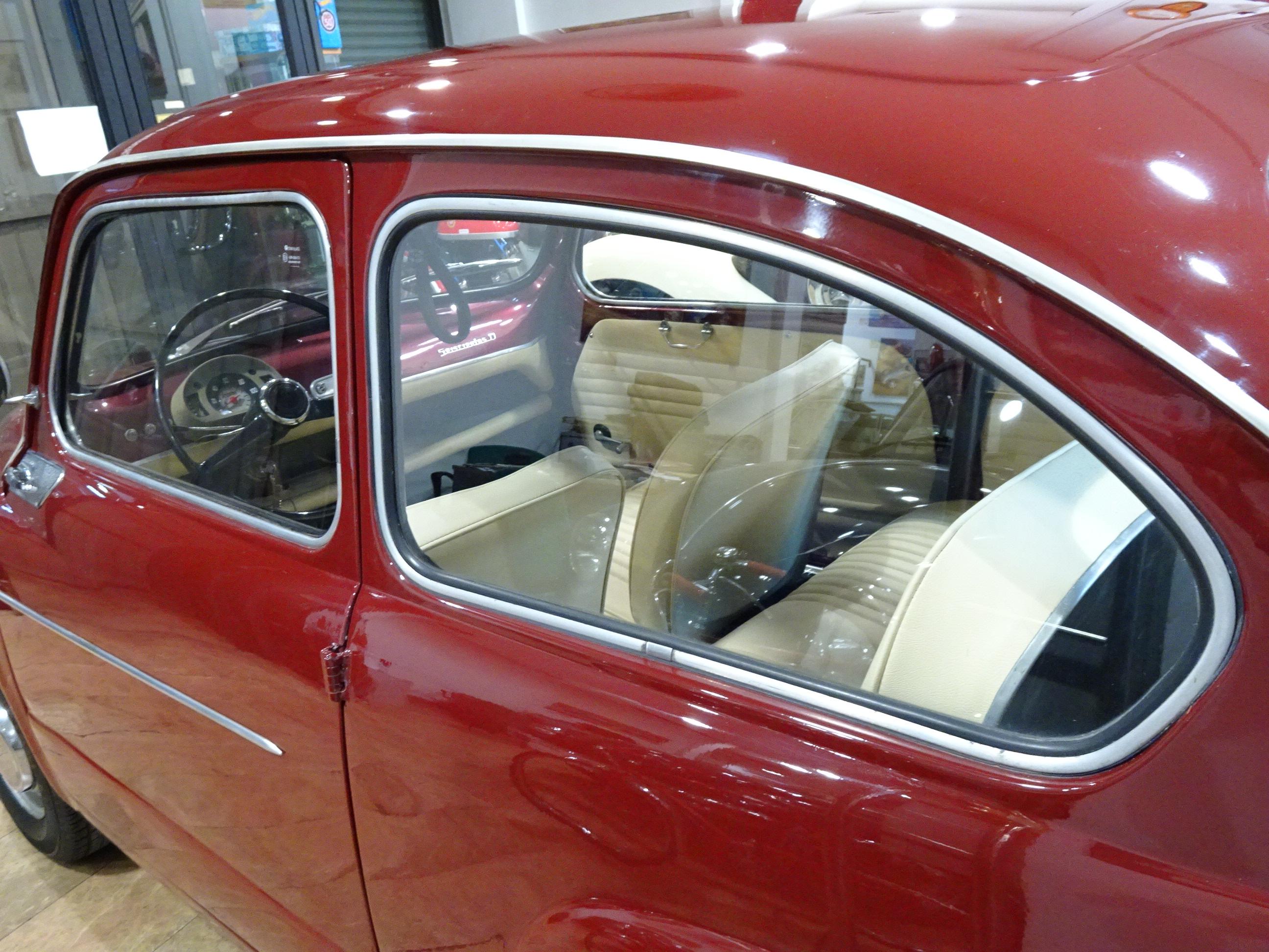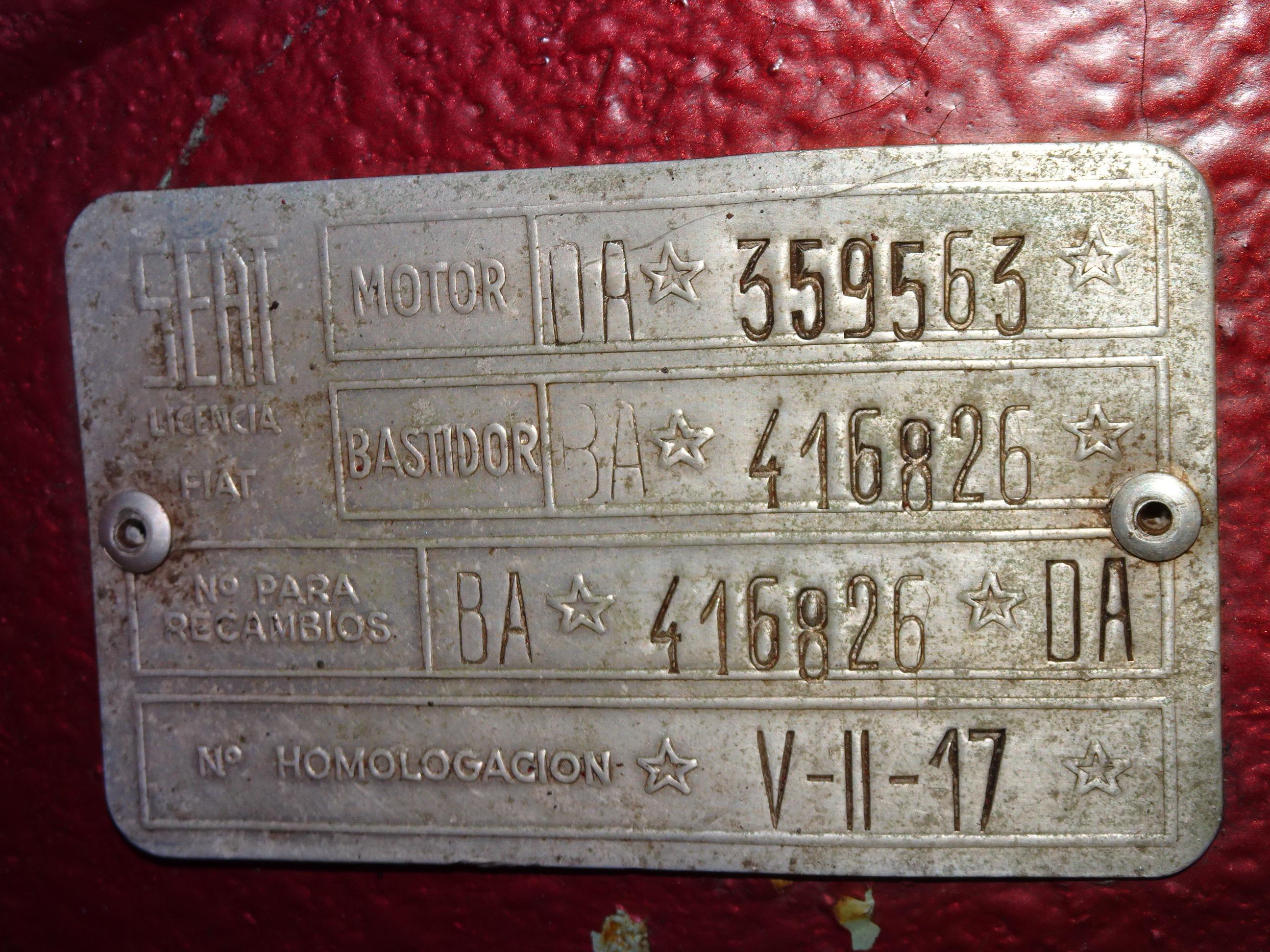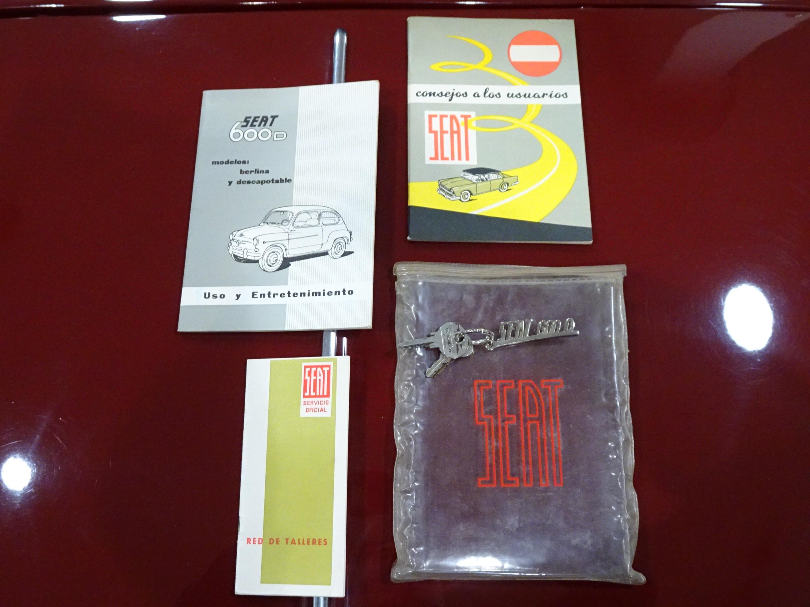 767 CC., 29 CV, 4 CILINDROS, 4 VELOCIDADES, VERSIÓN SEISCIENTOS D SEGUNDA SERIE, COLOR GRANATE - BURDEOS, BANDEJA CENTRAL Y TRASERA CROMADAS, CAJA HERRAMIENTAS ORIGINAL SEAT, RADIADOR MAYOR CAPACIDAD (DE MONTAÑA), 4 PLAZAS, ALUMBRADO VERSIÓN 600 E, LIBROS DE INSTRUCCIONES ORIGINALES, TAPICERÍA BEIGE, RECIÉN TAPIZADO (ASIENTOS Y PANELES LATERALES), PUESTA A PUNTO RECIENTE (BOMBA DE AGUA, FRENOS, CARBURACIÓN, ETC.), MISMO PROPIETARIO DESDE HACE MÁS DE 25 AÑOS, MUY ORIGINAL, MUY BUEN ESTADO, CORRECTO FUNCIONAMIENTO, MATRÍCULA ORIGINAL (V), DOCUMENTACIÓN e ITV AL DÍA.