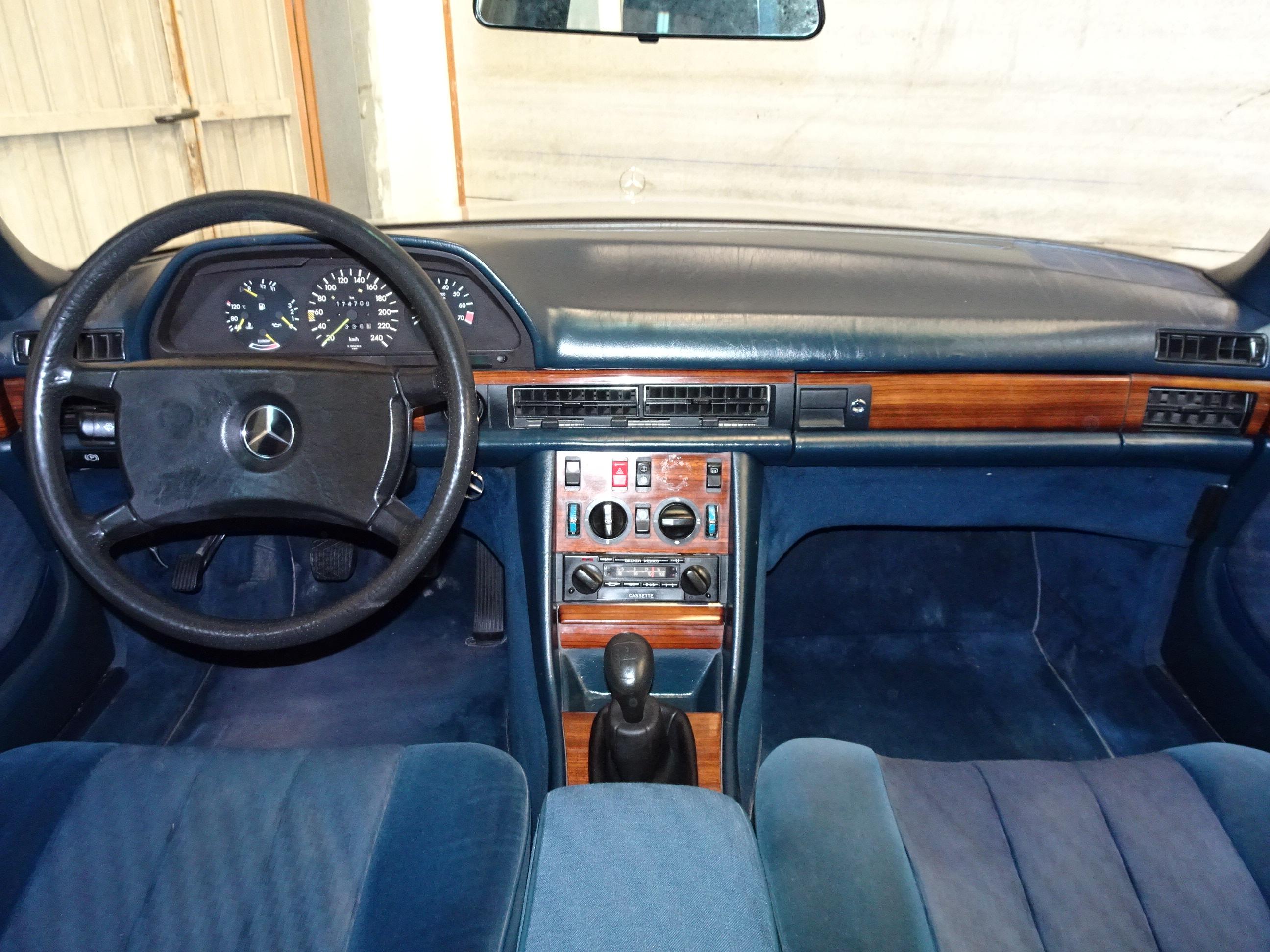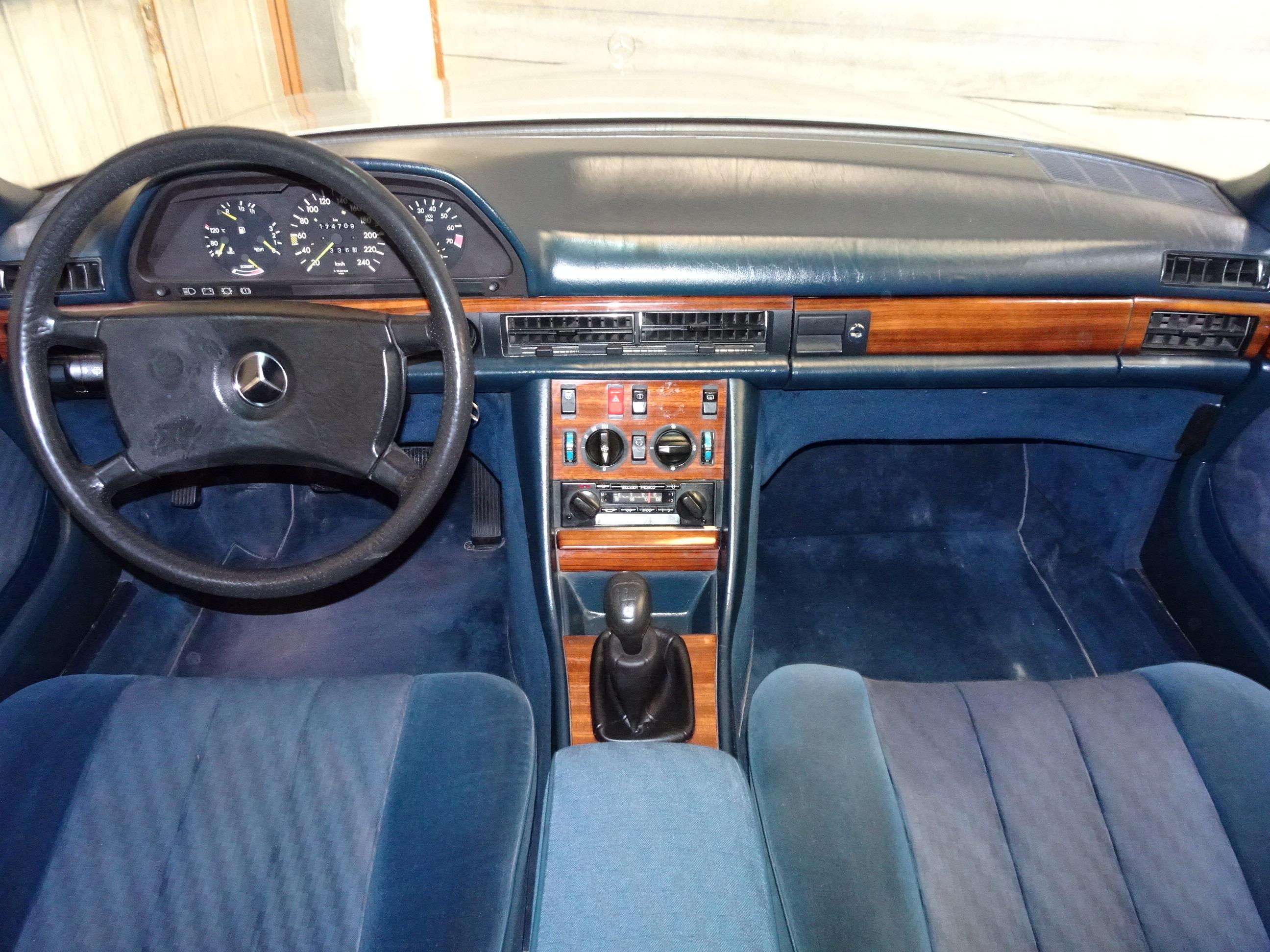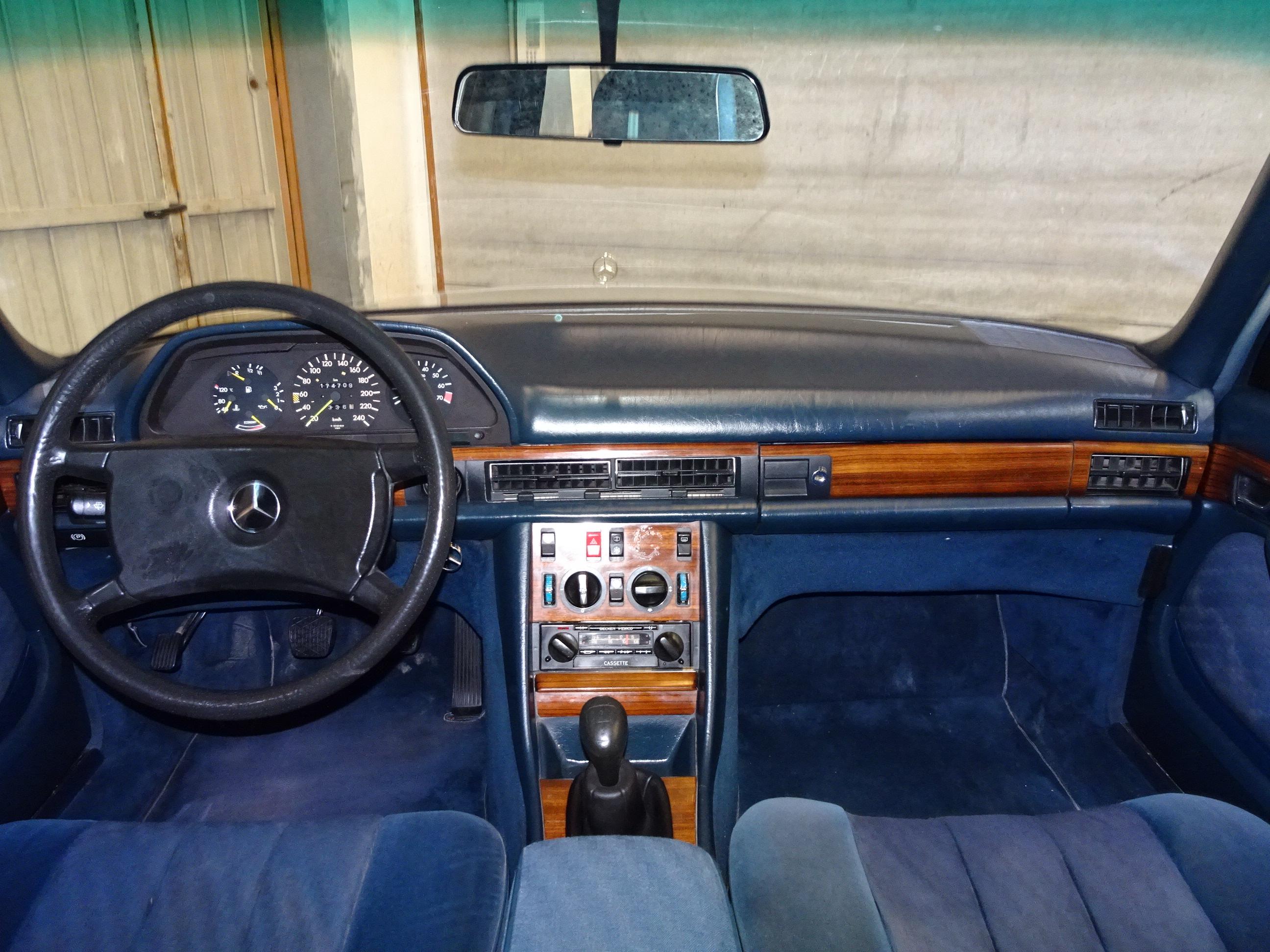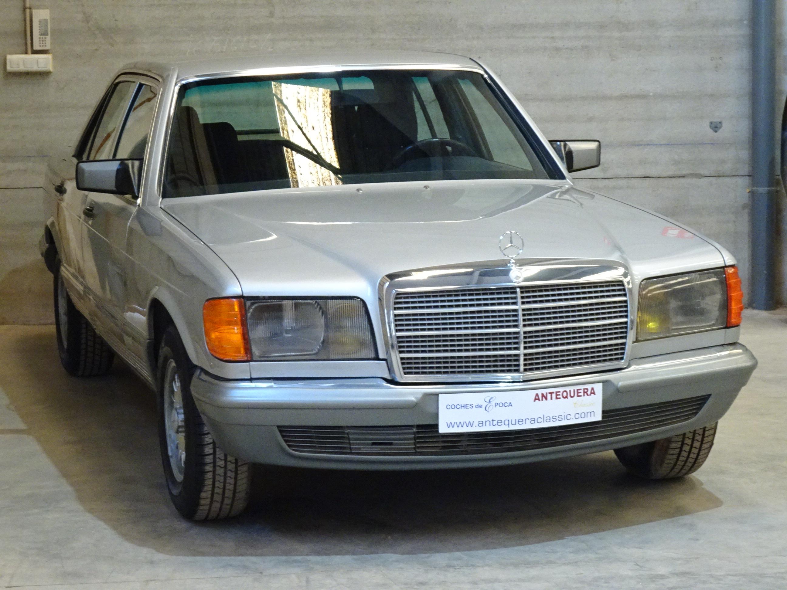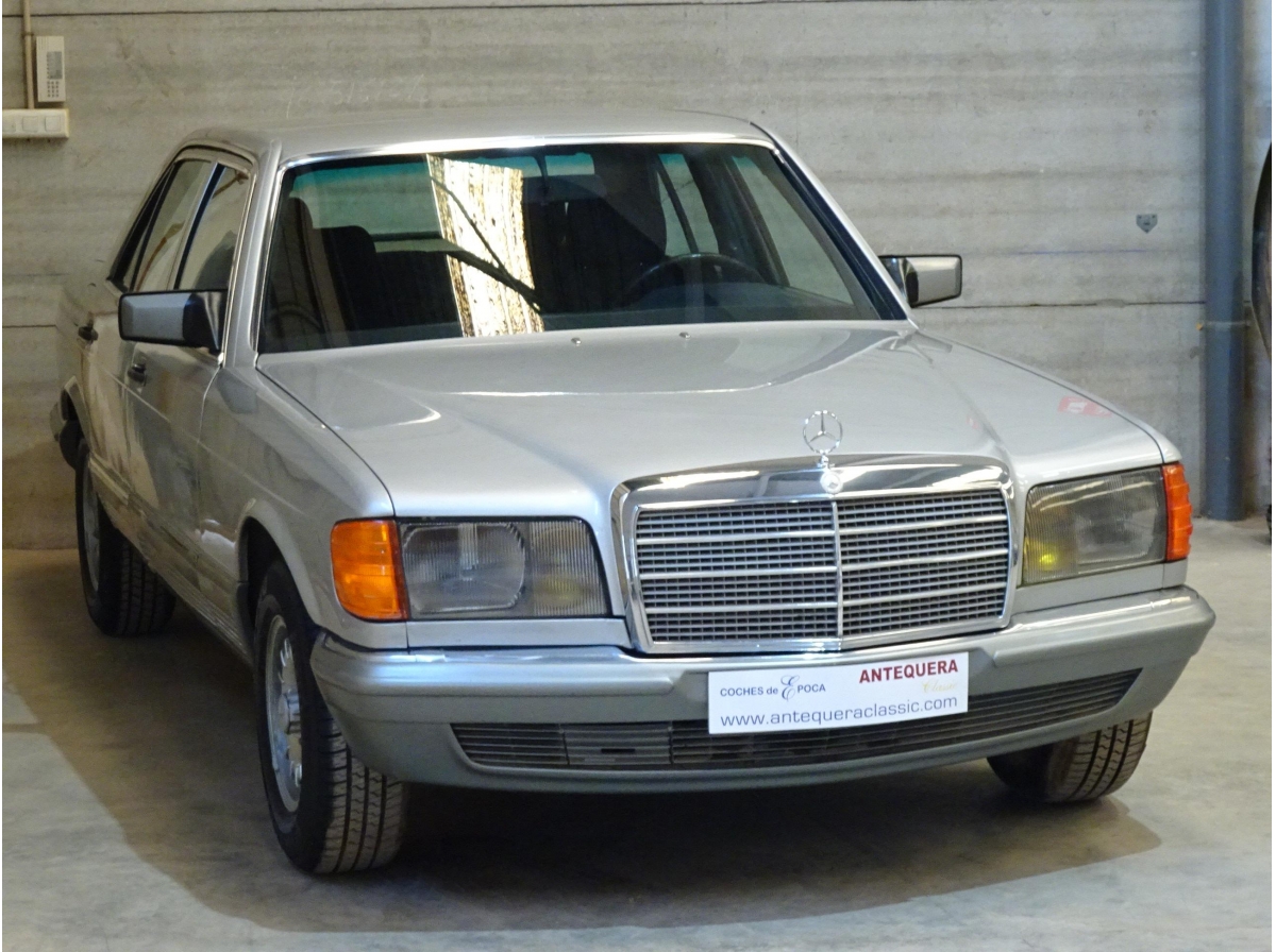 2.746 CC., 185 CV, 6 CILINDROS, CAMBIO MANUAL 5 VELOCIDADES, MERCEDES BENZ CLASE S, S-KLASS, VERSIÓN 126.022, MOTOR M110 - 110989, MATCHING NUMBERS, NÚMERO DE BASTIDOR Y MOTOR COINCIDENTES, GASOLINA SIN PLOMO, INYECCIÓN BOSCH K-JETRONIC, DOHC DOBLE ÁRBOL DE LEVAS, AIRE ACONDICIONADO (COMPRESOR NUEVO), DIRECCIÓN ASISTIDA, CIERRE CENTRALIZADO, 4 ELEVALUNAS ELÉCTRICOS, ESPEJO RETROVISOR DERECHO ELÉCTRICO, ASIENTOS DELANTEROS REGULABLES ELÉCTRICAMENTE, 4 FRENOS DE DISCO, 5 LLANTAS BARROCAS ORIGINALES MERCEDES-BENZ 14", INTERIOR EN MADERA, 5 PLAZAS, RADIO-CASSETTE BECKER MEXICO ORIGINAL, PINTURA METALIZADA PLATA ASTRAL 735 U, BICOLOR (DOBLE TONO: PLATA - GRIS), TAPICERÍA MB TELA AZUL 032 (TERCIOPELO - TELA), APOYABRAZOS CENTRAL, CRISTALES ATÉRMICOS, LUNA DELANTERA CON FRANJA PARASOL TINTADA, CORTINILLAS TRASERAS, BOTIQUÍN, 174.000 KMS. ORIGINALES, BUEN ESTADO, NECESITA PUESTA A PUNTO POR LARGO PERÍODO INACTIVO (MÁS DE 5 AÑOS), ESTRENADO EN ESPAÑA, SIEMPRE EN LA MISMA FAMILIA, MATRÍCULA ORIGINAL (MU), DOCUMENTACIÓN COMPLETA.