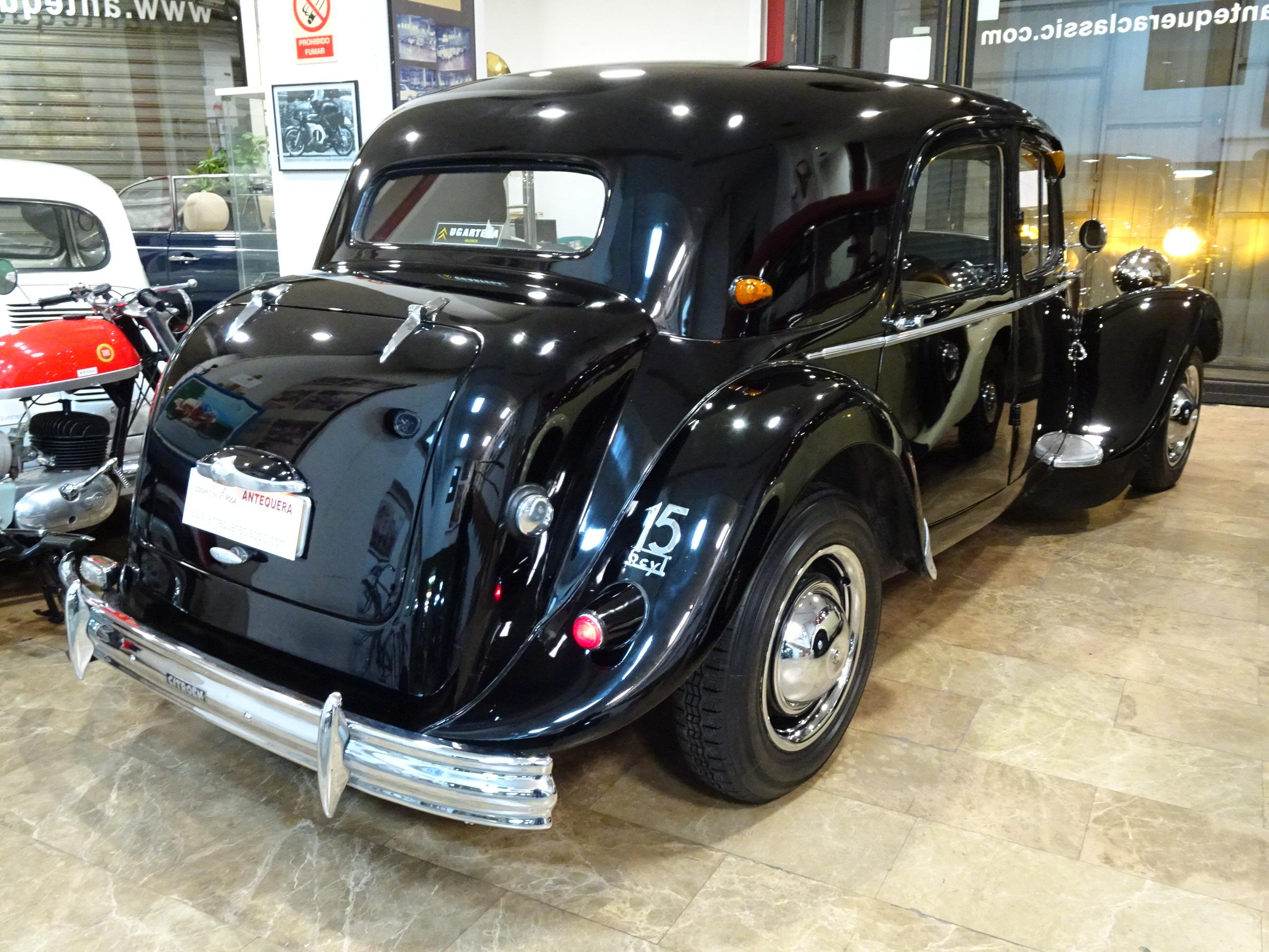 2867 CC., 77 CV, 6 CILINDROS, 3 VELOCIDADES, CARBURADOR SOLEX 30 PAAI, CITROËN 15/6 TRACTION AVANT, CITROËN 15 SIX D 6 CYL., EXCLUSIVA VERSIÓN ORIGINAL CON MALETERO RAOUL (MALLE RAOUL), DISEÑADO POR RAOUL CARROSSIER (PARIS - FRANCIA), FABRICADO POR S.A. ANDRÉ CITROËN (PARIS), BASTIDOR 699379, TIPO DE MOTOR MO-101, NÚMERO DE MOTOR PM-05197, CARROCERÍA EH-07369, ESTILO SEDÁN, COLOR NEGRO, TAPICERÍA ORIGINAL GRIS EN PERFECTO ESTADO, FAROS MARCHAL CON LUZ AMARILLA + FAROS LARGO ALCANCE MARCHAL 662 762, 4 AMPLIAS PLAZAS, PARABRISAS CON APERTURA PARA VENTILACIÓN, VENTANILLAS DELANTERAS CON APERTURA DERIVABRISAS, RUEDAS NUEVAS MICHELIN 165-400, CROMADOS NUEVOS, RECIENTE REVISIÓN Y PUESTA A PUNTO REALIZADA TRAS LARGO PERÍODO INACTIVO (REFRIGERACIÓN, SISTEMA COMPLETO DE FRENOS, CARBURACIÓN, BOMBA DE AGUA, BOMBA DE GASOLINA, ETC.), ELEMENTOS DE EMBELLECIMIENTO ROBRI / AXO, MUY BUEN ESTADO, CORRECTO FUNCIONAMIENTO, PERTENECIENTE AL CONCESIONARIO CITROËN EN VALENCIA - UGARTE (UGARTESA), VEHÍCULO EN ESCAPARATE DE CITROËN DURANTE MÁS DE 40 AÑOS Y MISMO PROPIETARIO MÁS DE 60 AÑOS, SIEMPRE EN VALENCIA, MODELO MUY EXCLUSIVO DE CITROËN TRACCION, LIBRO DE INSTRUCCIONES ORIGINAL, VARIOS LIBROS DE REPARACIÓN - MANTENIMIENTO E INFORMACIÓN DEL MODELO (EN FRANCÉS), MINIATURA NUEVA A ESCALA 1:43 DE LA SAGA DES TRACTION CON FASCÍCULO, JUEGO DE HERRAMIENTAS ORIGINALES, MATRÍCULA ORIGINAL (V), DOCUMENTACIÓN AL DÍA, POSIBILIDAD VEHÍCULO HISTÓRICO CON EXENCIÓN DE ITV. SE INCLUYEN NUMEROSOS RECAMBIOS NUEVOS (AMORTIGUADORES, MANDOS, LLAVES CITROËN, PILOTOS INTERMITENTES, EMBLEMAS, KIT CARBURADOR,ETC.)
