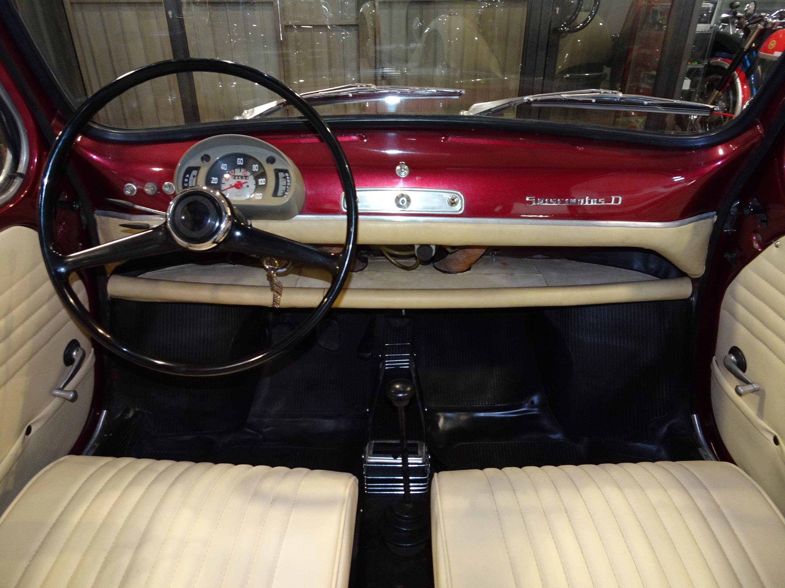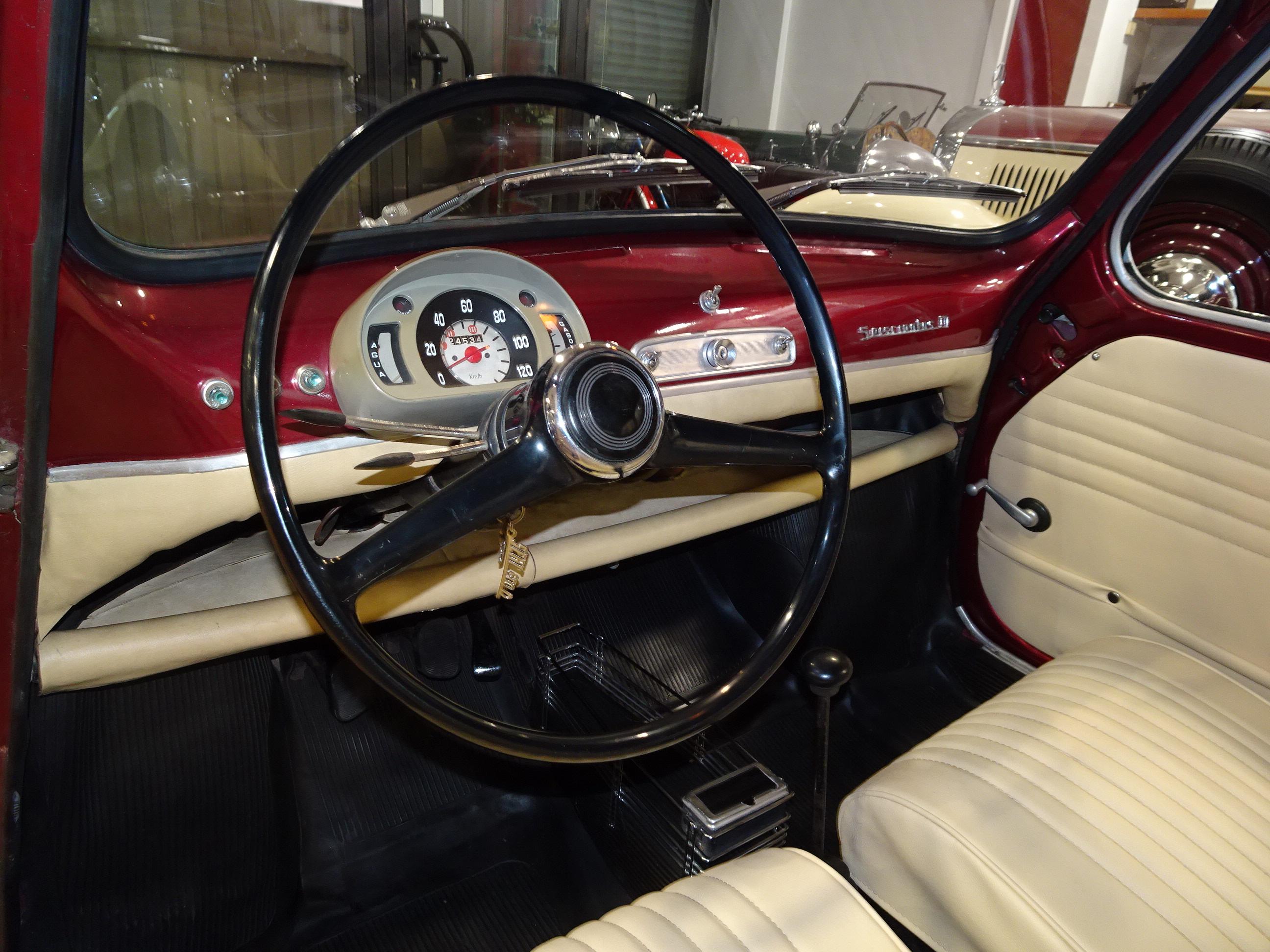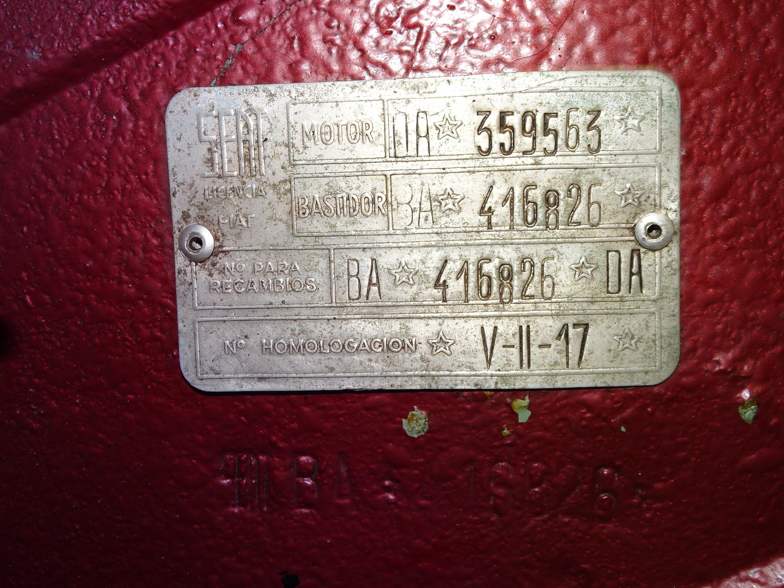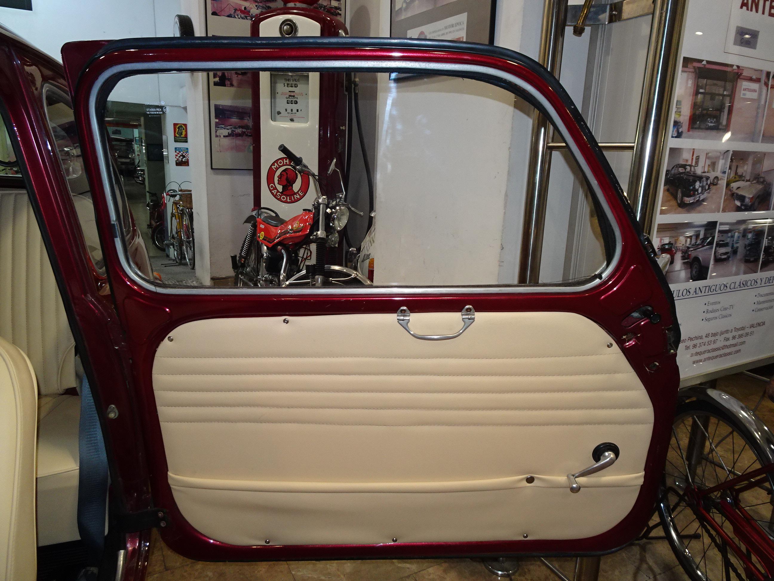 767 CC., 29 CV, 4 CILINDROS, 4 VELOCIDADES, VERSIÓN SEISCIENTOS D SEGUNDA SERIE, COLOR GRANATE - BURDEOS, BANDEJA CENTRAL Y TRASERA CROMADAS, CAJA HERRAMIENTAS ORIGINAL SEAT, RADIADOR MAYOR CAPACIDAD (DE MONTAÑA), 4 PLAZAS, ALUMBRADO VERSIÓN 600 E, LIBROS DE INSTRUCCIONES ORIGINALES, TAPICERÍA BEIGE, RECIÉN TAPIZADO (ASIENTOS Y PANELES LATERALES), PUESTA A PUNTO RECIENTE (BOMBA DE AGUA, FRENOS, CARBURACIÓN, ETC.), MISMO PROPIETARIO DESDE HACE MÁS DE 25 AÑOS, MUY ORIGINAL, MUY BUEN ESTADO, CORRECTO FUNCIONAMIENTO, MATRÍCULA ORIGINAL (V), DOCUMENTACIÓN e ITV AL DÍA.
