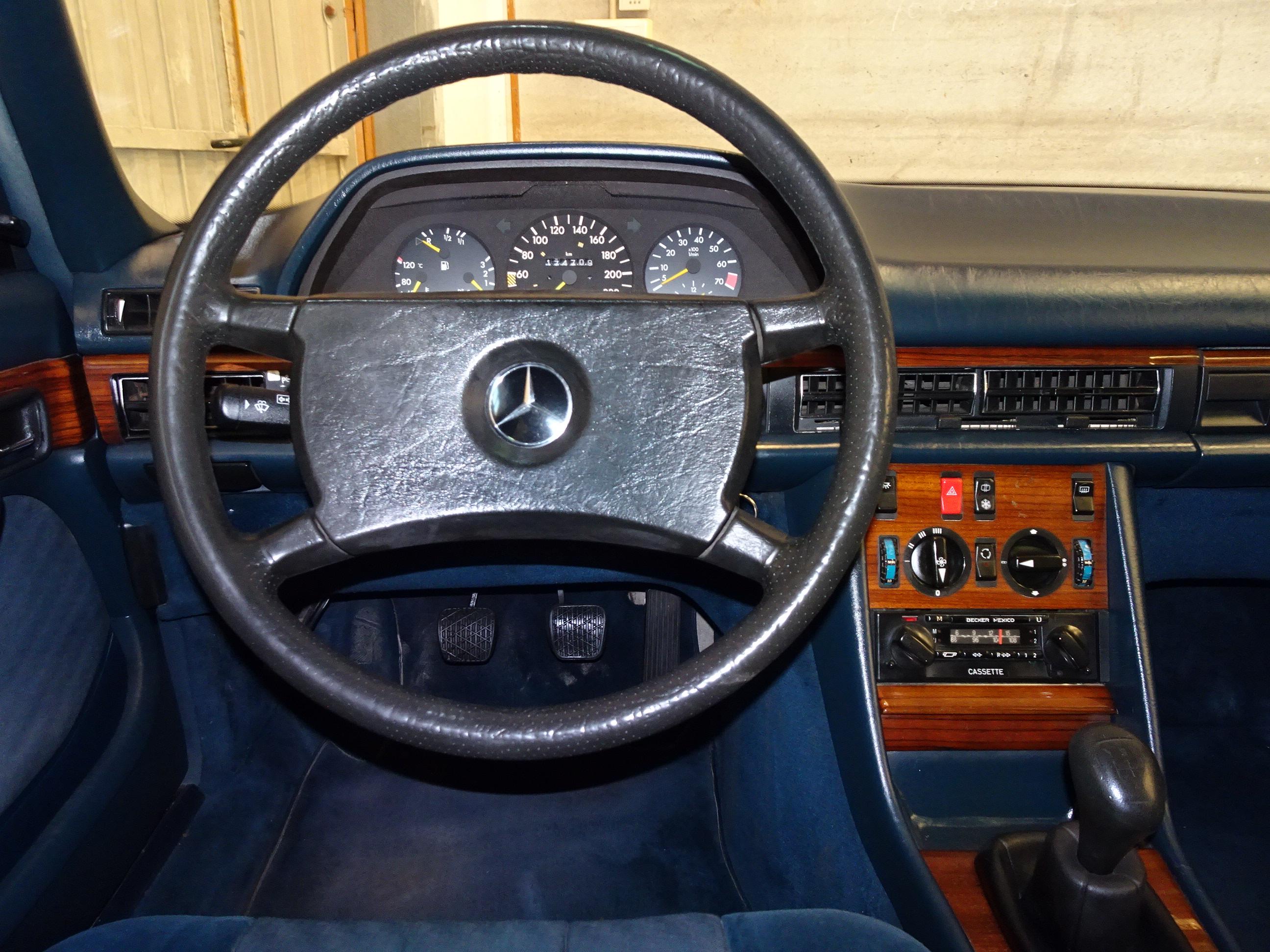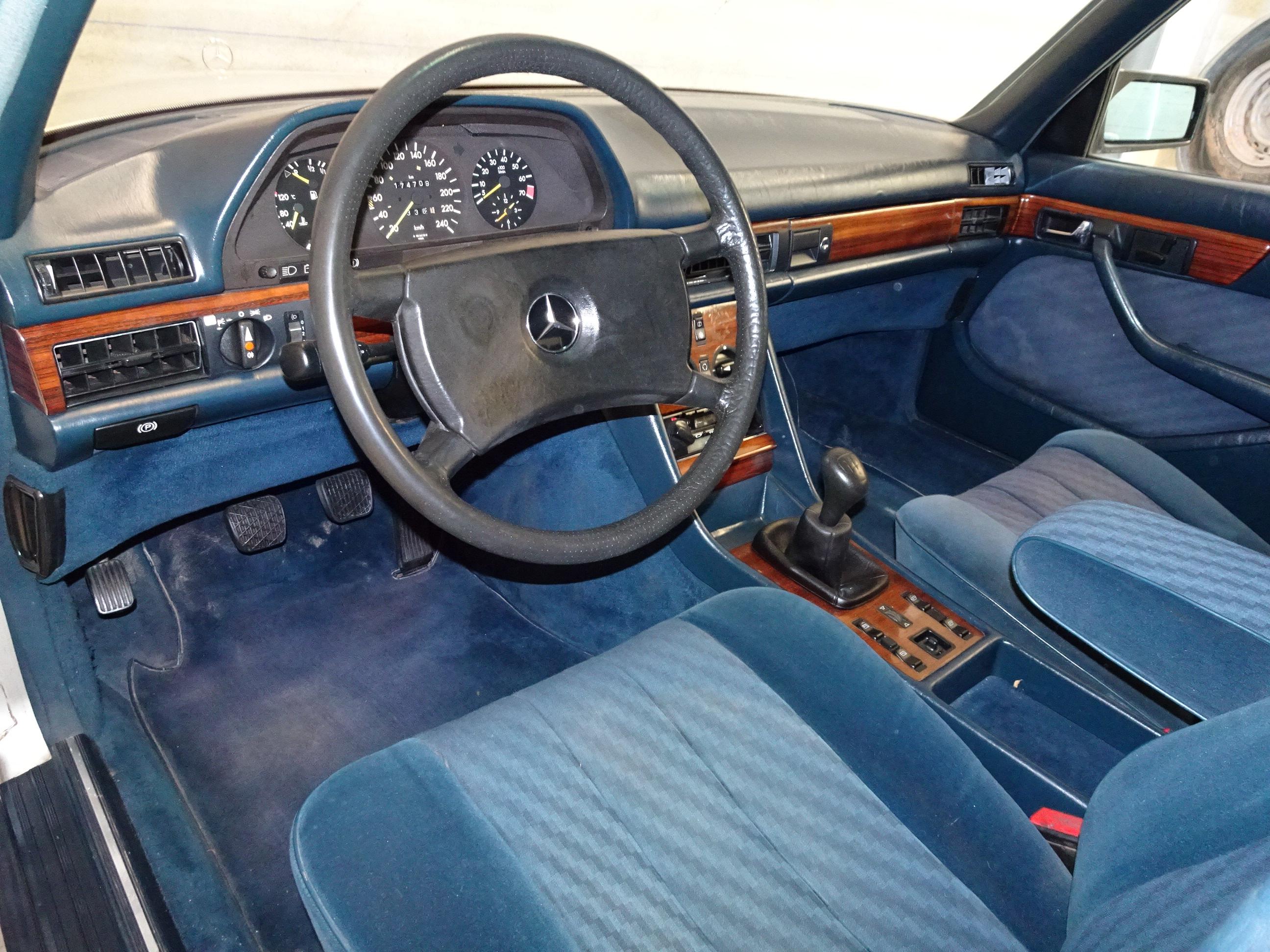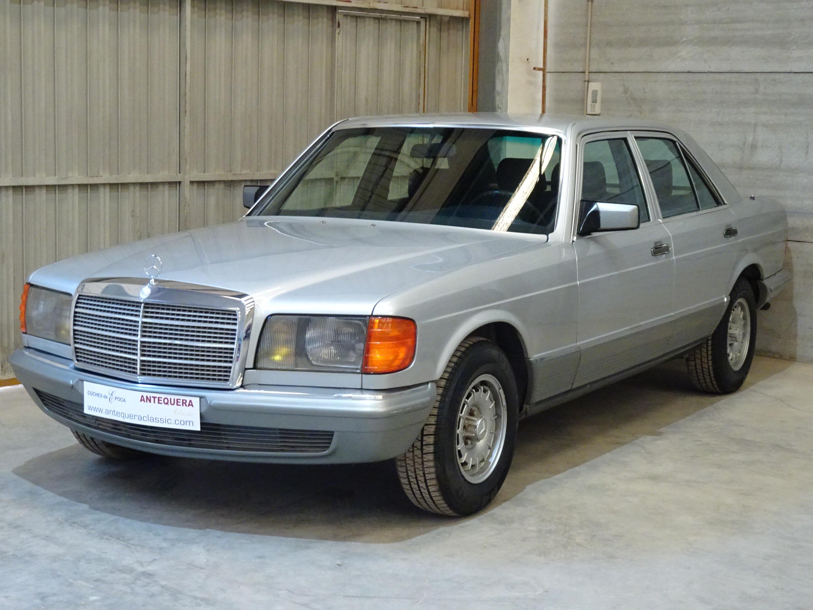 2.746 CC., 185 CV, 6 CILINDROS, CAMBIO MANUAL 5 VELOCIDADES, MERCEDES BENZ CLASE S, S-KLASS, VERSIÓN 126.022, MOTOR M110 - 110989, MATCHING NUMBERS, NÚMERO DE BASTIDOR Y MOTOR COINCIDENTES, GASOLINA SIN PLOMO, INYECCIÓN BOSCH K-JETRONIC, DOHC DOBLE ÁRBOL DE LEVAS, AIRE ACONDICIONADO (COMPRESOR NUEVO), DIRECCIÓN ASISTIDA, CIERRE CENTRALIZADO, 4 ELEVALUNAS ELÉCTRICOS, ESPEJO RETROVISOR DERECHO ELÉCTRICO, ASIENTOS DELANTEROS REGULABLES ELÉCTRICAMENTE, 4 FRENOS DE DISCO, 5 LLANTAS BARROCAS ORIGINALES MERCEDES-BENZ 14", INTERIOR EN MADERA, 5 PLAZAS, RADIO-CASSETTE BECKER MEXICO ORIGINAL, PINTURA METALIZADA PLATA ASTRAL 735 U, BICOLOR (DOBLE TONO: PLATA - GRIS), TAPICERÍA MB TELA AZUL 032 (TERCIOPELO - TELA), APOYABRAZOS CENTRAL, CRISTALES ATÉRMICOS, LUNA DELANTERA CON FRANJA PARASOL TINTADA, CORTINILLAS TRASERAS, BOTIQUÍN, 174.000 KMS. ORIGINALES, BUEN ESTADO, NECESITA PUESTA A PUNTO POR LARGO PERÍODO INACTIVO (MÁS DE 5 AÑOS), ESTRENADO EN ESPAÑA, SIEMPRE EN LA MISMA FAMILIA, MATRÍCULA ORIGINAL (MU), DOCUMENTACIÓN COMPLETA.